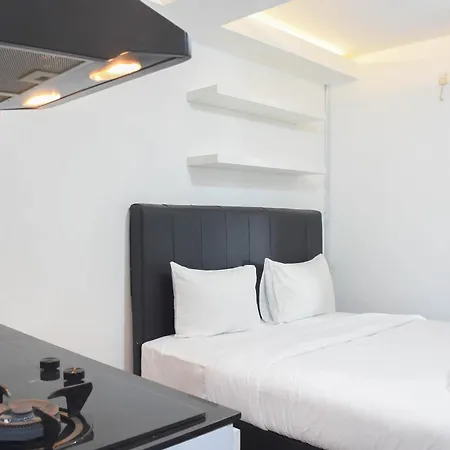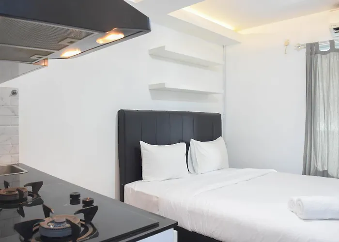 Comfort And Homey Studio At Amethyst Apartment By Travelio includes a kitchen fitted with a refrigerator and a stove top for self-catering. The 1-room Comfort And Homey Studio At Amethyst Apartment By Travelio is in the vicinity of the nearest bus stop Gunung Sahari Mangga Dua.